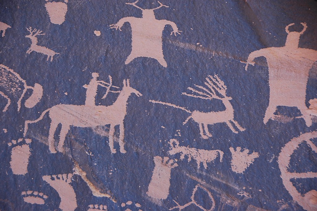 Bears Ears, located in southeastern Utah, is the ancestral lands of several tribal nations and a sacred landscape where cliff dwellings, villages, ritual spots, prehistoric roads, and petroglyphs and rock writings remain remarkably well-preserved due to geographic peculiarities of the region. Large petrograph panels at Bears Ears display rock writings from the Basketmaker (500 BCE to 750 CE) and Ancestral Pueblo (100 to 1600 CE) cultures. Some inscriptions of sheep, human figures, and hunting scenes date as far back as 4000 BCE, and exemplary Pueblo structures survive to this day. A bird’s-eye view of Bears Ears reveals sprawling red rock formations and mesas characteristic of the Four Corners states, and pastoral land within its boundaries continues to be grazed by livestock. Jake Palma, Bears Ears National Monument manager, remarked that “people rely still on many of the resources that are found on the Bears Ears landscape.”